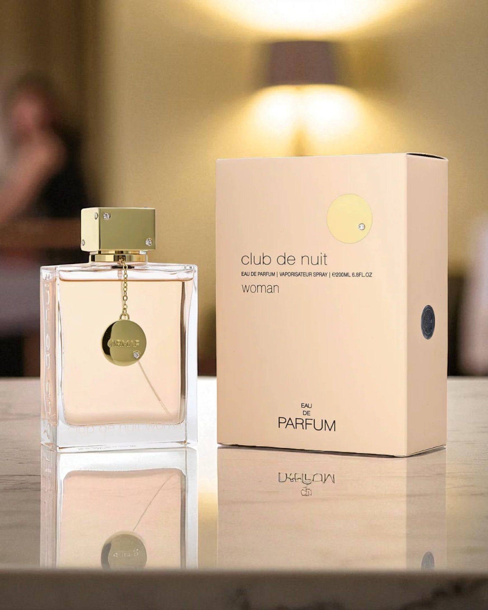 Club de Nuit Woman abre con cítricos vibrantes (naranja, bergamota, pomelo, durazno) que dan paso a un corazón floral de rosa, jazmín, lichi y geranio, y termina en una base suave de vainilla, pachulí, almizcle y vetiver para un aroma femenino, elegante y envolvente.