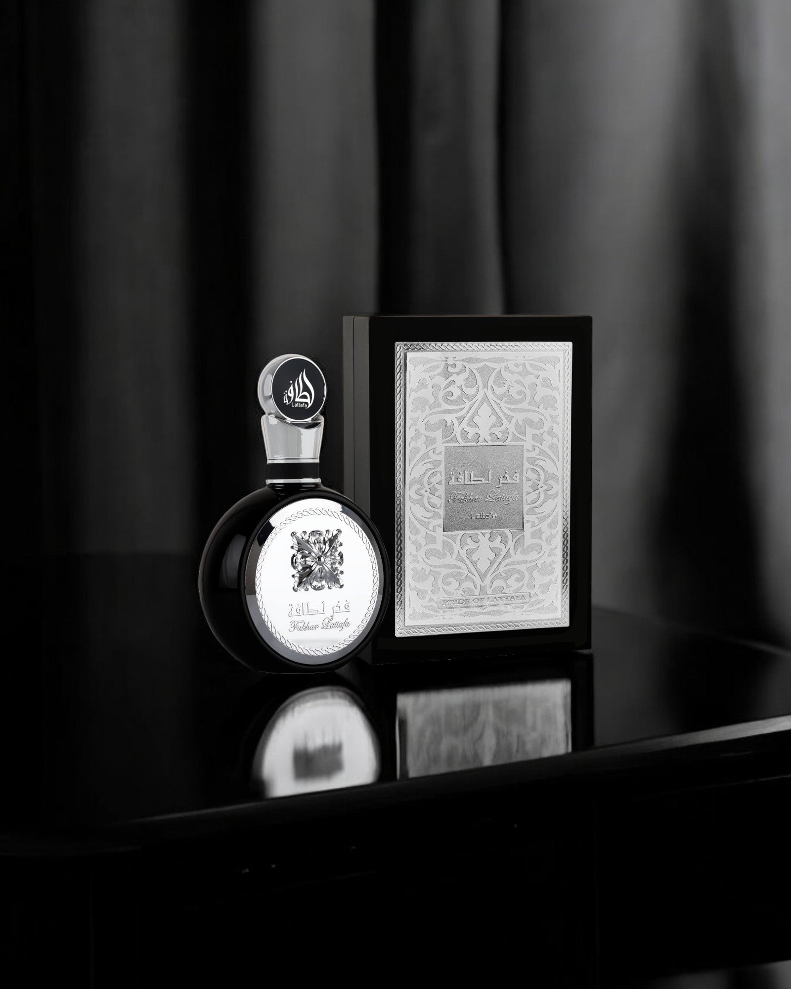 Fakhar Black de Lattafa es una fragancia aromática fougère que se abre con notas frescas de manzana, jengibre y bergamota, ofreciendo una introducción vibrante y energizante. En el corazón, la salvia, la baya de enebro y el geranio aportan una faceta aromática y ligeramente especiada. La base está compuesta por vetiver, tonka y cedro, proporcionando una profundidad amaderada y terrosa.