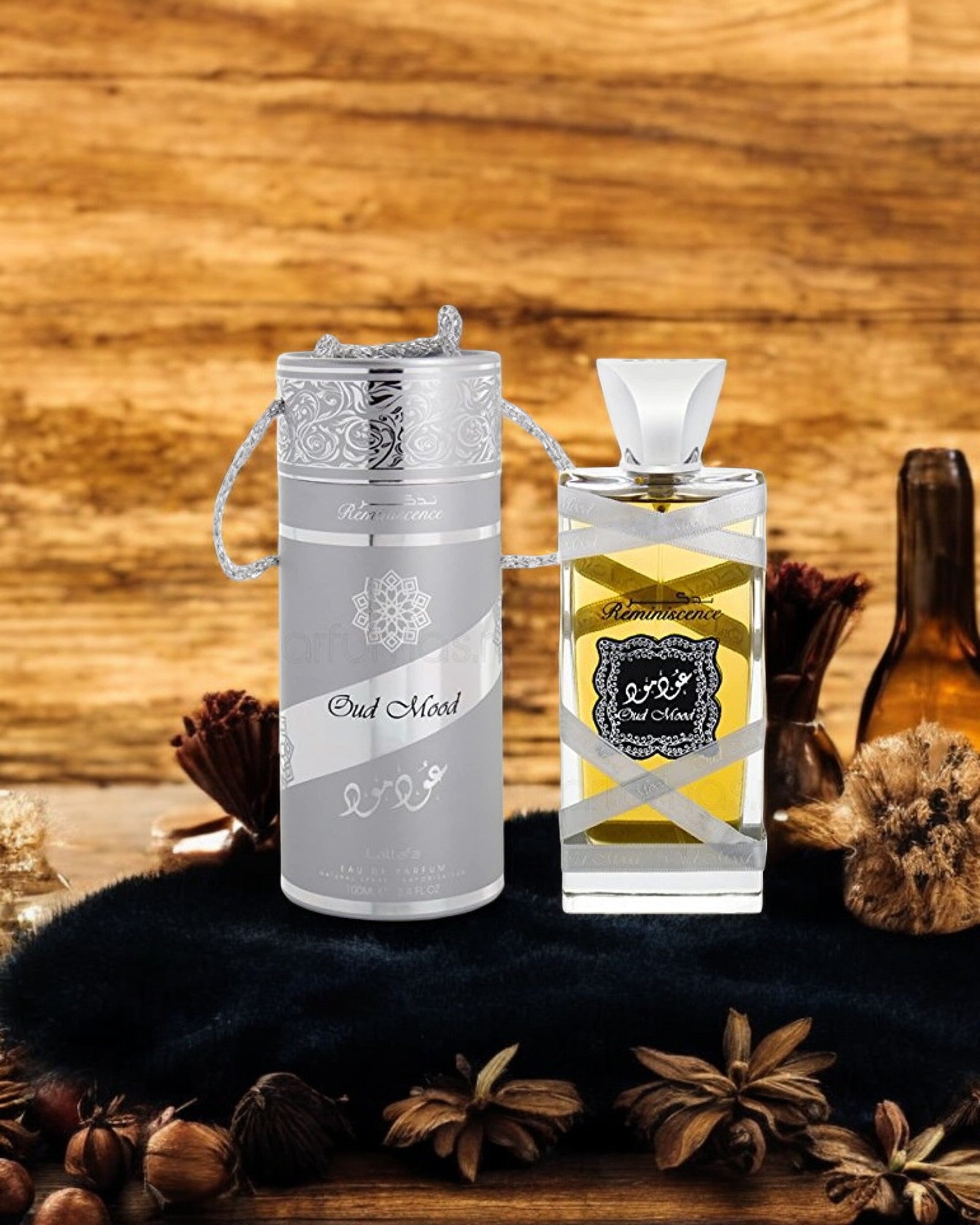 Oud Mood Silver de Lattafa es una fragancia oriental que se abre con notas de bergamota, manzana y piña, ofreciendo una introducción fresca y afrutada. En el corazón, la rosa, el patchouli, el abedul y el jazmín marroquí aportan una faceta floral y amaderada. La base combina vainilla, almizcle, musgo de roble y ámbar gris, proporcionando una profundidad cálida y terrosa.