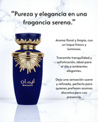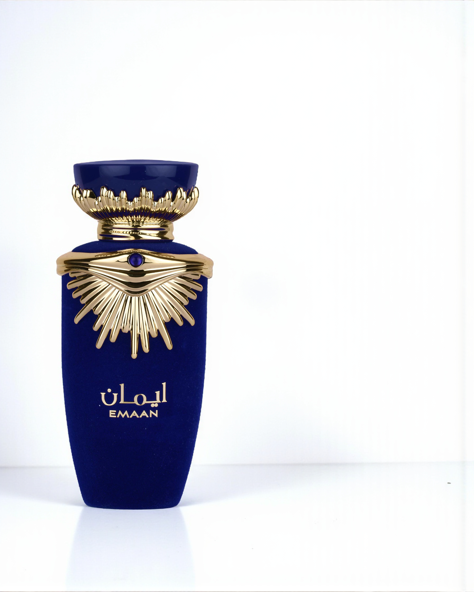 Emaan despierta con notas cítricas de bergamota, flor de azahar y grosella negra, evoluciona con tuberosa, jazmín y caléndula, y descansa sobre una base de vainilla, musgo blanco, pachulí y cedro, proyectando un bouquet floral-cremoso con elegancia femenina.