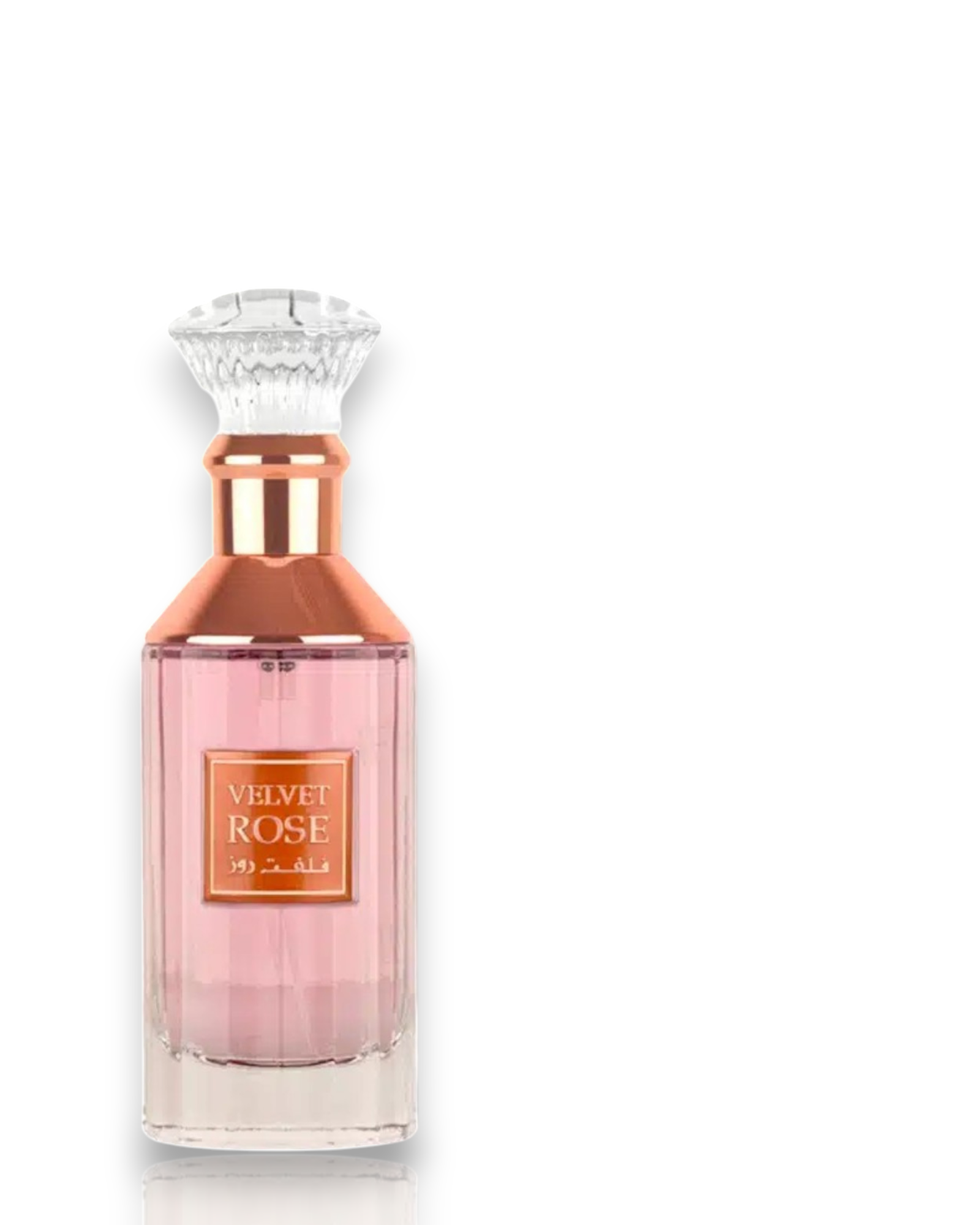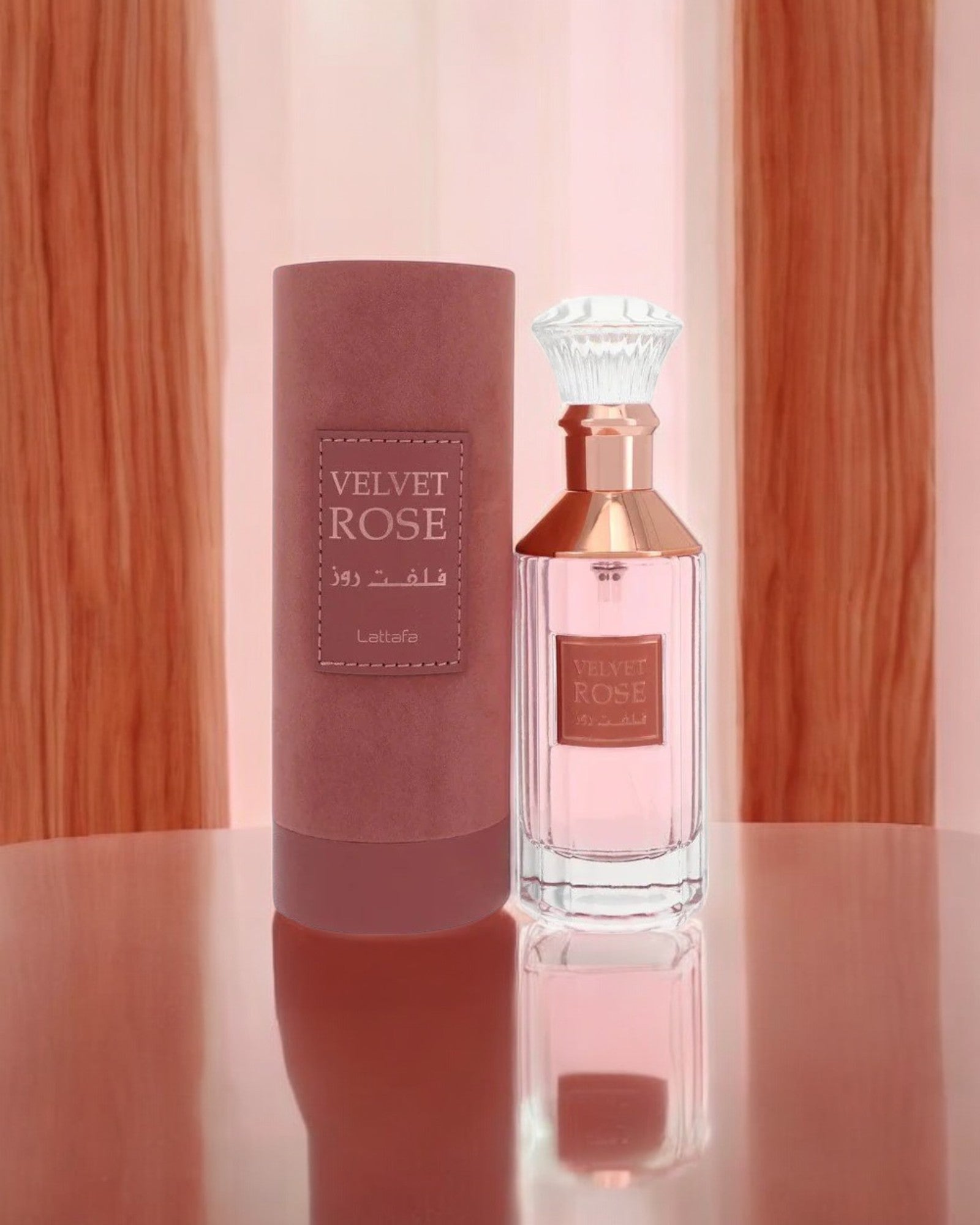 Velvet Rose de Lattafa es una fragancia oriental floral que se abre con notas de rosa y pachulí, ofreciendo una introducción floral y terrosa. En el corazón, el ládano y el almizcle aportan una faceta cálida y almizclada. La base combina ámbar y más almizcle, proporcionando una profundidad dulce y resinosa.