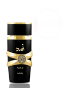 Asad de Lattafa es una fragancia de la familia olfativa Ámbar para hombres. Se abre con notas especiadas de pimienta negra, tabaco y un toque afrutado de piña. El corazón revela una mezcla de pachulí, café e iris, aportando profundidad y carácter. La base combina vainilla, ámbar, maderas secas, benjuí y ládano, ofreciendo un final cálido y envolvente.