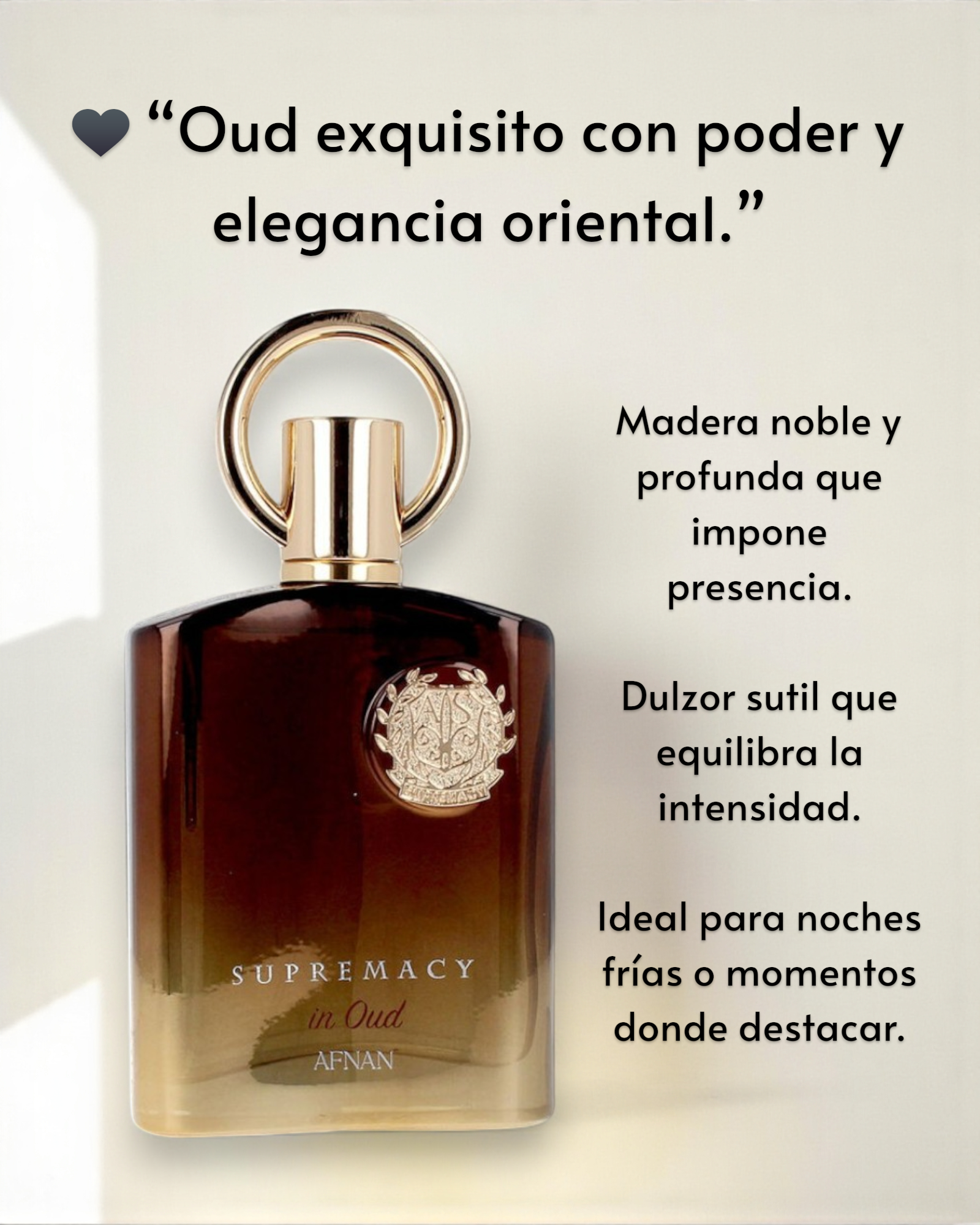 Supremacy in Oud de Afnan es una fragancia que rinde homenaje a las tradiciones de Oriente Medio, ofreciendo una estela elegante e intoxicante que anuncia la presencia del portador antes de su llegada. Desde la primera aplicación, las notas de azafrán, nuez moscada y lavanda crean una apertura especiada y aromática. En el corazón, el oud y notas dulces aportan profundidad y calidez, mientras que la base de pachulí y almizcle proporciona una fijación terrosa y sensual.