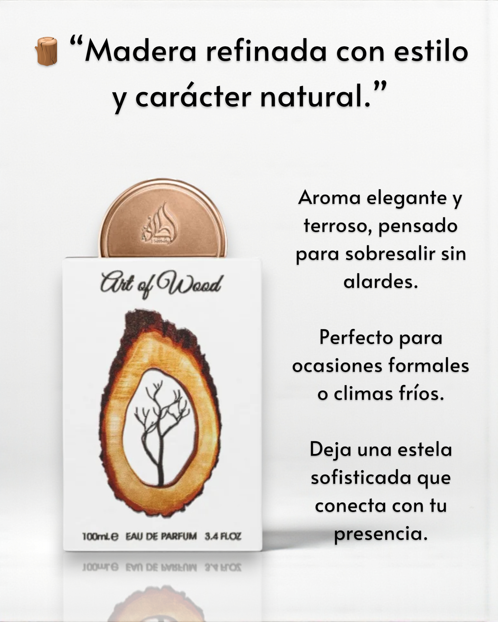 Art of Wood de Lattafa es una fragancia sofisticada que equilibra notas vibrantes y terrosas. Se abre con una mezcla fresca y especiada de bergamota, pimienta rosa y pomelo, que da paso a un corazón rico en rosa, pachulí y cedro, aportando profundidad y elegancia. Finalmente, una base cálida de vetiver, musgo de roble y vainilla proporciona un acabado sensual y duradero.