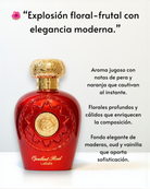 Opulent Red de Lattafa es una fragancia floral afrutada que se abre con notas de pera, naranja sanguina y pimienta rosa, ofreciendo una introducción dulce y especiada. En el corazón, el jazmín, el café y otras notas florales aportan una faceta floral y energética. La base combina vainilla, pachulí, cedro y almizcle, proporcionando una profundidad cálida y amaderada.