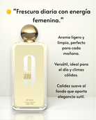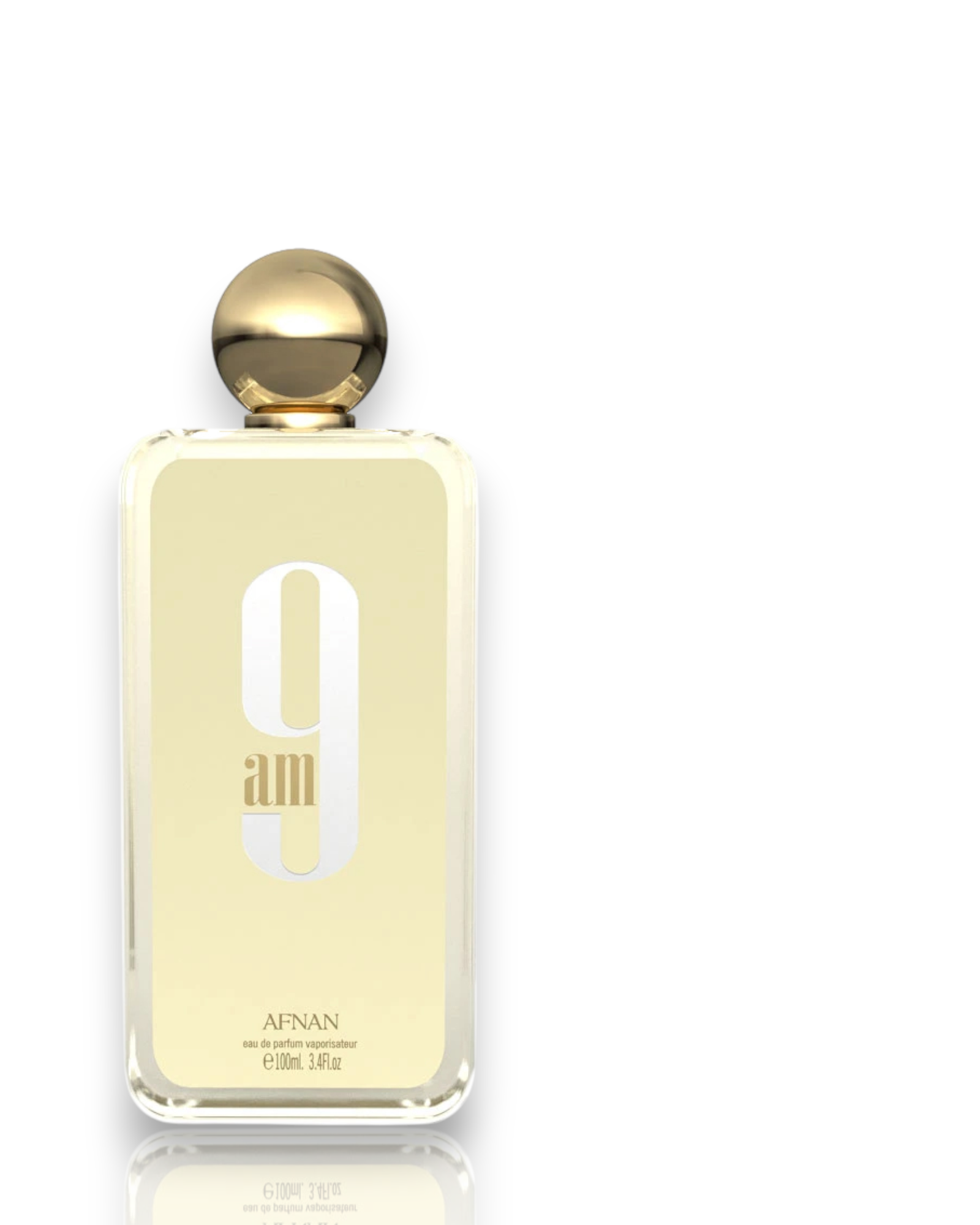 9AM de Afnan es una fragancia que sorprende por su evolución. Inicia con una salida fresca y jugosa de mandarina, acompañada por el toque especiado del cardamomo. A medida que se desarrolla, emergen notas de pimienta rosa y manzana verde, aportando un carácter especiado y seductor. En el secado, se perciben matices amaderados y florales, con un sutil acorde de rosa que añade profundidad y elegancia.