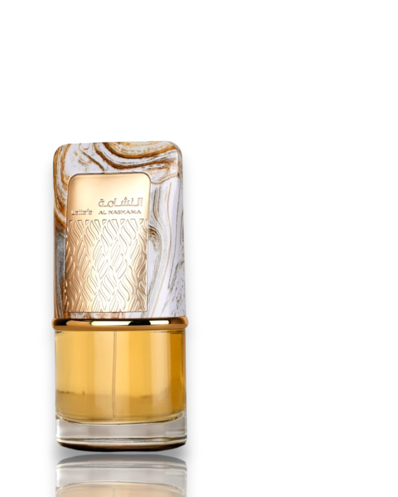 Al Nashama de Lattafa es una fragancia que combina notas especiadas y afrutadas para crear una experiencia olfativa sofisticada. Se abre con una vibrante mezcla de bergamota, pimienta rosa y salvia, ofreciendo una introducción fresca y especiada. En el corazón, la ciruela, la pimienta negra y el jazmín aportan profundidad y un toque dulce. Finalmente, las notas de fondo de cuero Saffiano, ámbar, pachulí y musgo proporcionan una base cálida y duradera que envuelve los sentidos.