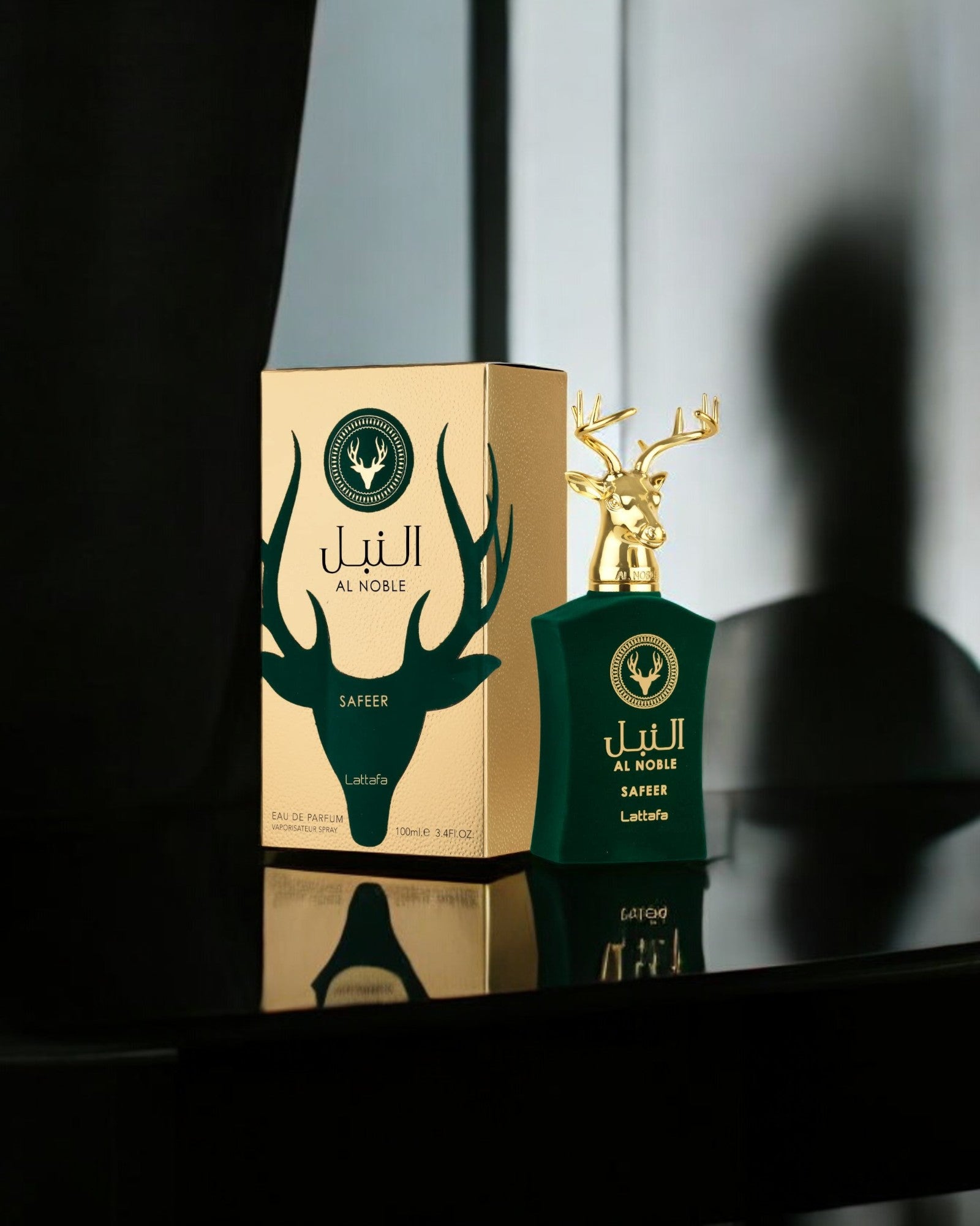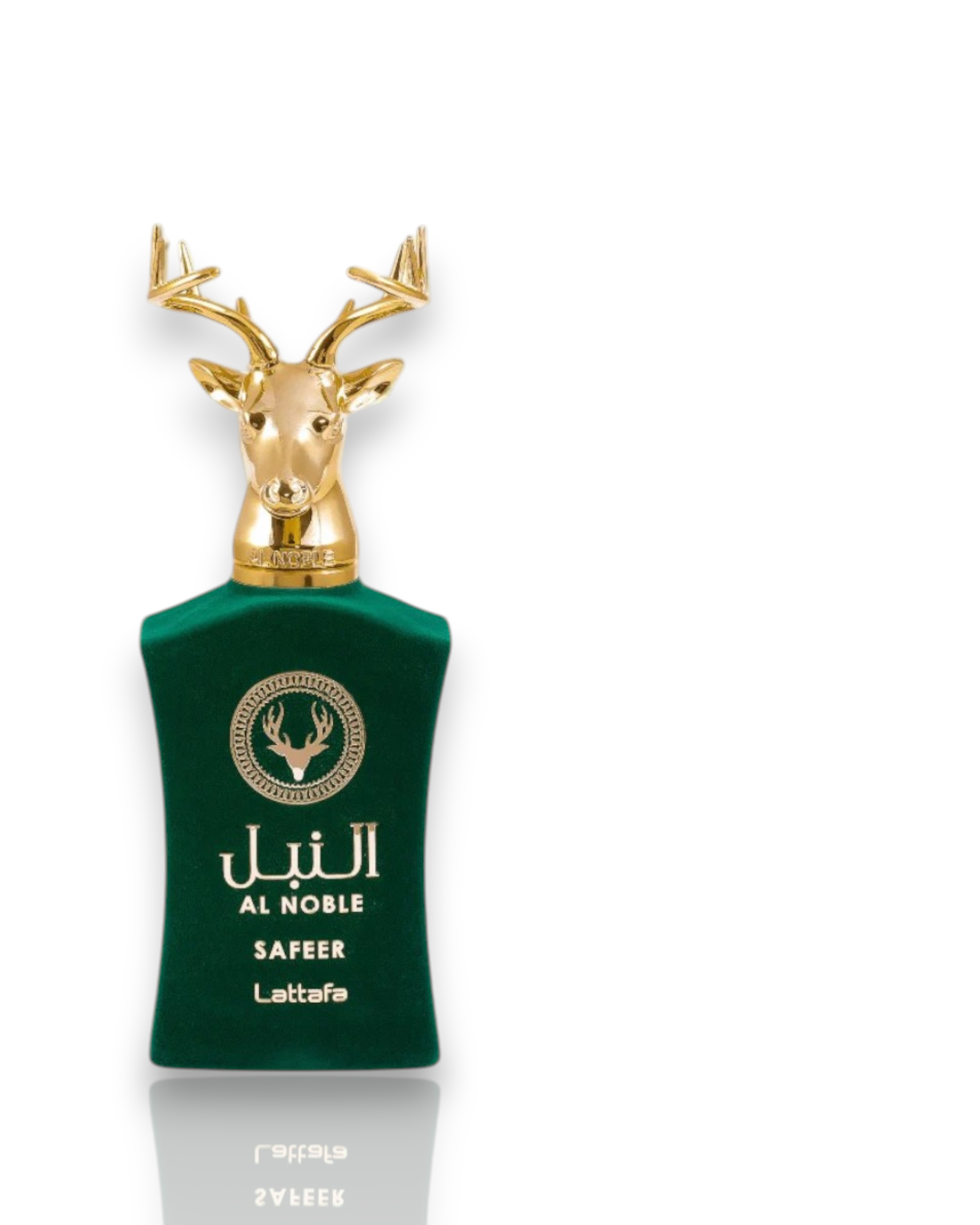 Al Noble Safeer de Lattafa es una fragancia fresca y especiada que equilibra notas verdes y amaderadas. La apertura presenta una combinación de bergamota y abrótano, brindando una sensación cítrica y aromática. El corazón está compuesto por notas herbales, verdes y especiadas que aportan profundidad y carácter. En el fondo, la madera de gaiac, el enebro de Virginia, el incienso, el pachulí, las notas de frutos secos, el ládano y el comino crean una base cálida y terrosa que completa esta composición única.