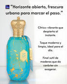 Arabian Sky de Armaf es una fragancia amaderada aromática que ofrece una experiencia olfativa fresca y energizante. Se abre con notas cítricas de aceite de naranja, piña, toronja, bergamota, pimienta y limón, proporcionando una introducción vibrante y jugosa. En el corazón, el geranio, la lavanda, el ylang-ylang y el caramelo aportan una mezcla floral y dulce que equilibra la composición. La base combina almizcle, ámbar, cedro, vetiver, pachulí y cuero, creando una estela cálida y duradera.