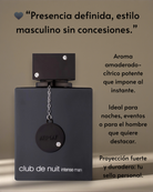 Club de Nuit Intense Man EDP de Armaf es una fragancia amaderada especiada que combina notas cítricas y amaderadas para una experiencia olfativa sofisticada y vibrante. Se abre con notas de limón, piña, bergamota, grosellas negras y manzana, ofreciendo una introducción fresca y afrutada. En el corazón, el abedul, el jazmín y la rosa aportan una mezcla floral y amaderada que añade profundidad. La base de almizcle, ámbar gris, pachulí y vainilla proporciona una fijación cálida y duradera.