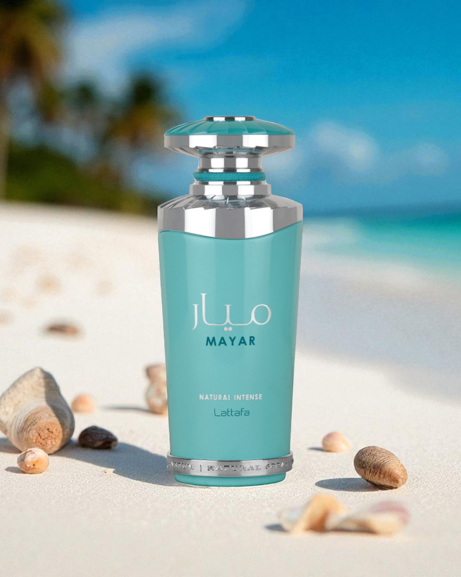 Mayar Natural Intense de Lattafa es una fragancia ligera y refrescante que arranca con mandarina verde, higo, melón y agua de coco jugosa. En el corazón, florece la elegancia acuática del loto, lirio de agua y jazmín. La base aporta suavidad con vainilla, almizcle limpio, sándalo cremoso y un toque de ambroxan sutil.